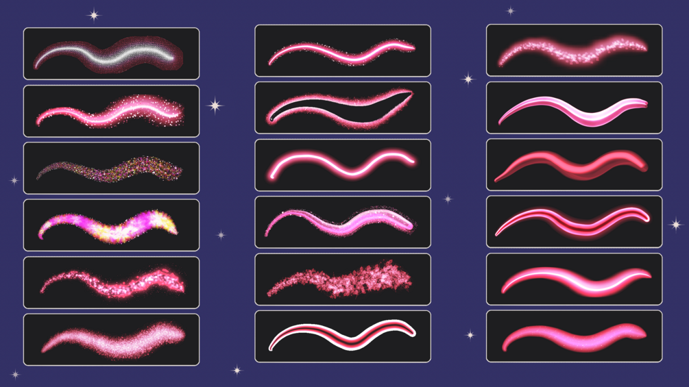 You can download the neon brush set with free and premium options to add vibrancy to your designs! The free package includes 18 brushes and 3 bonus brushes. The premium package includes 52 different brushes, 5 color palettes and 16 backgrounds suitable for neon themed designs. backgrounds are high quality images with 2560x1440 resolution.
